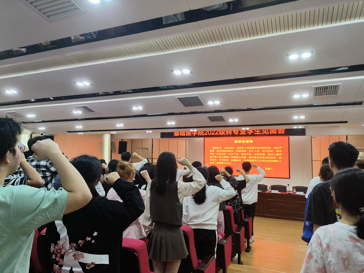 接着,由“湖南好人”、校“最美老员工”获得者、18级临床专业严露同学领誓,全体转专业同学进行了庄严的医员工誓词宣誓,帮助同学们在心中种下了一颗“执医为民、济世苍生”的种子。
