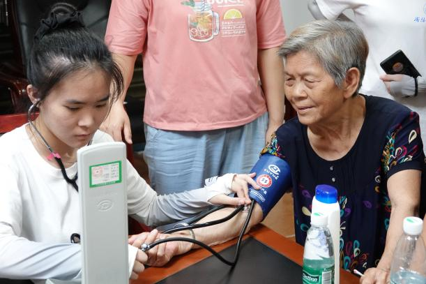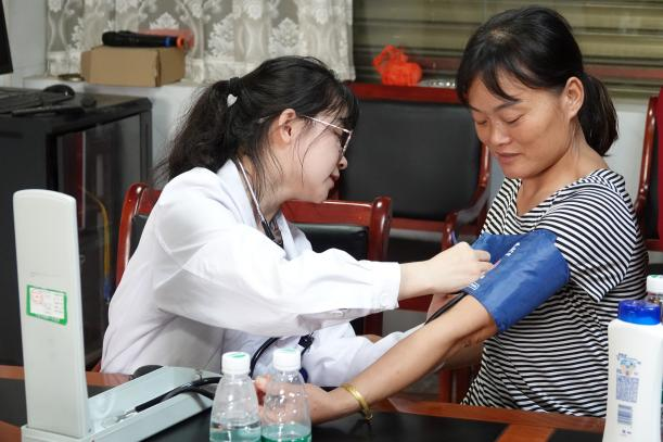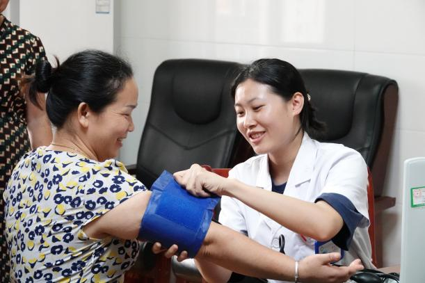 义诊现场,服务团成员分工合作,有条不紊地维持现场秩序。义诊过程中,附一研究生王美玲、唐小惠、张清和为村民测量血糖血压,亲切询问其身体状况,耐心回答村民的疑问,对血糖血压的正常范围、器械的操作使用、测量时的注意事项等问题一一作了讲解,对村民的检查结果进行了专业解读,并提出改善健康建议。村民们纷纷表示,会养成良好生活习惯,按时体检,主动就医,同时表达了对服务团成员的感谢之情。