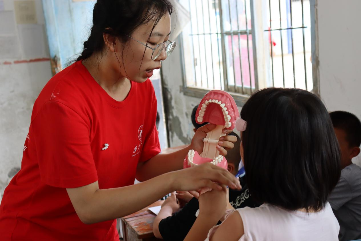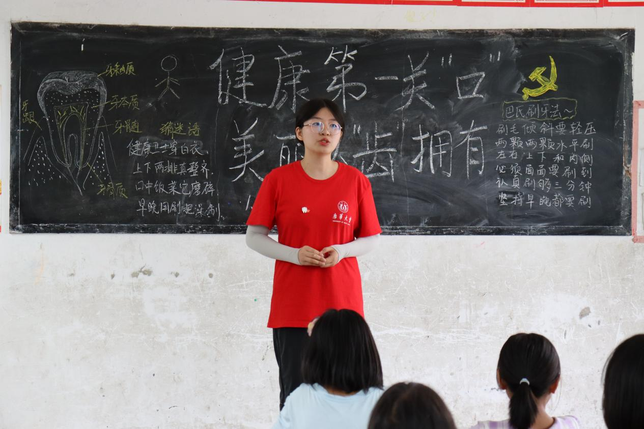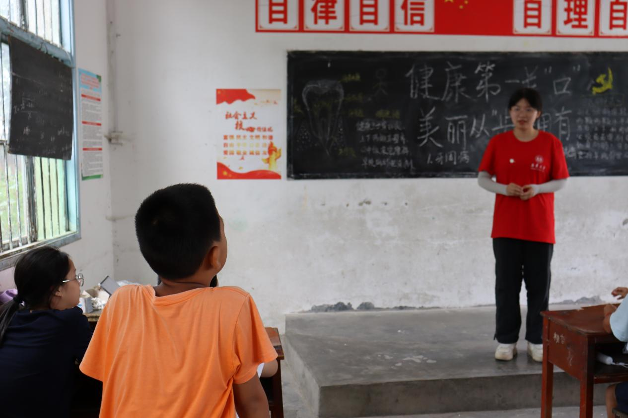 7月15日下午,太阳成集团tyc122ccvip太阳成集团tyc122ccvip2023年湖南省“芙蓉学子•乡村振兴”公益计划项目之“仲夏芙蓉医路行,医路向前”志愿服务团队成员赴邵阳市绥宁县东山侗族乡牛背岭村给侗族和苗族儿童口腔健康知识普及讲座,帮助少数民族儿童学习口腔日常保健知识,树立口腔卫生保健习惯。