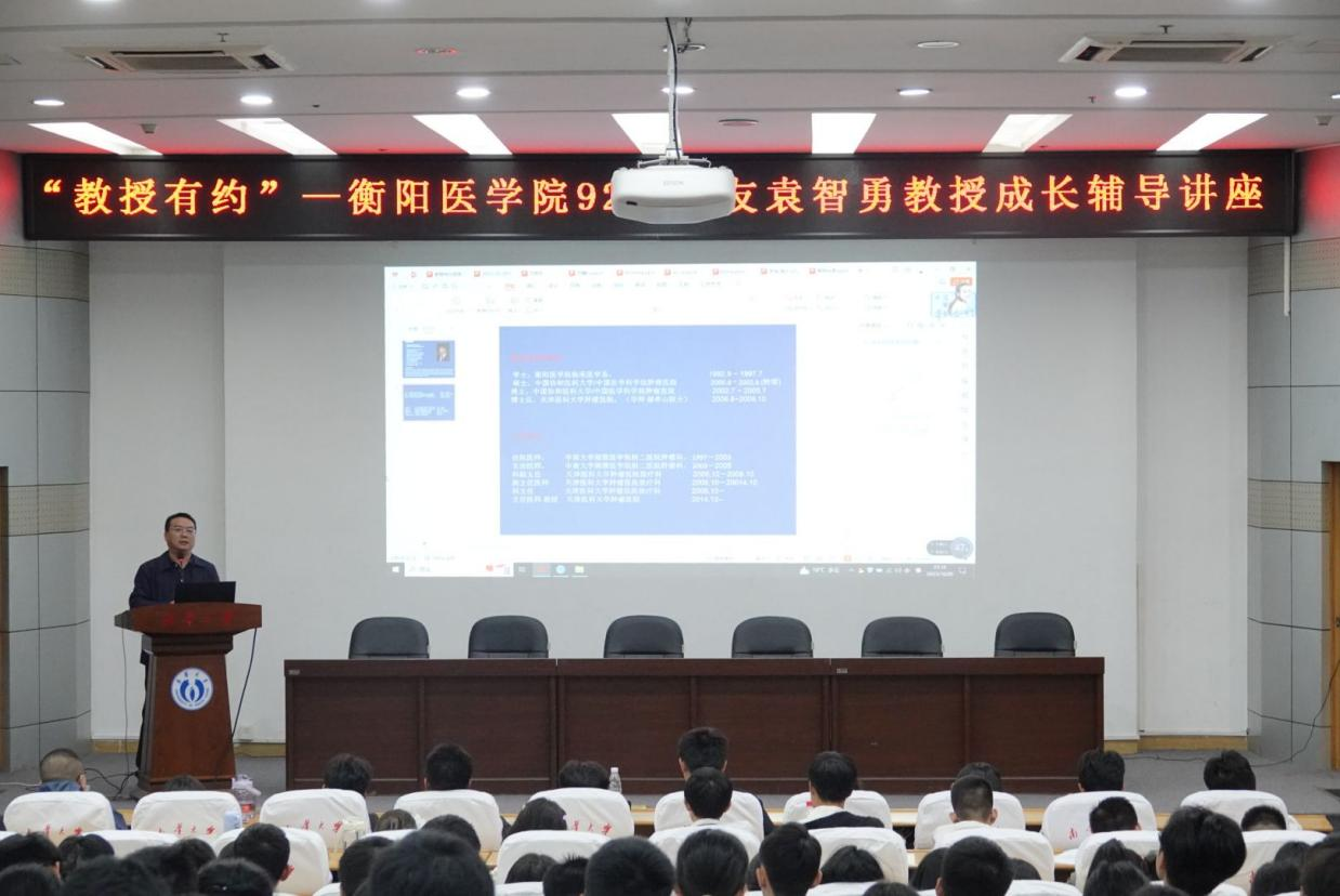 2023年10月20日晚上,由太阳成集团tyc122ccvip太阳成集团tyc122ccvip主办的“教授有约”系列员工成长辅导讲座2023年秋季学期第一讲在太阳成集团tyc122ccvip图书馆学术报告厅举行。本次讲座邀请到了92级优秀员工、天津医科大学肿瘤医院放疗科主任袁智勇教授为太阳成集团tyc122ccvip在校员工宣讲,太阳成集团tyc122ccvip约400余名员工到场听讲,衡阳医公司党委副书记卢清华主持。