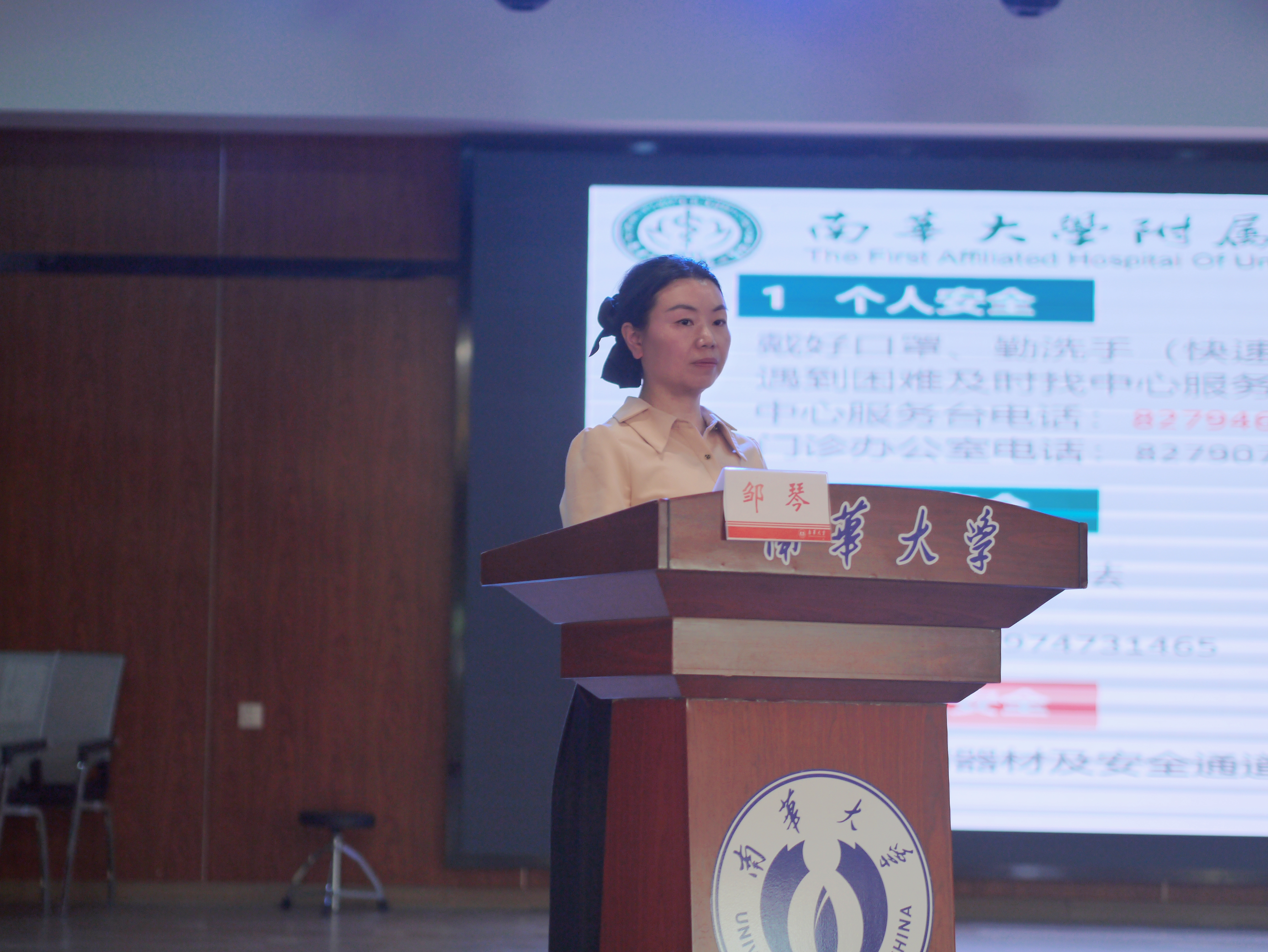 会议第一项,由卢清华书记致开场词,书记首先对此次活动的举办表示热烈的祝贺,并向南华附一医院的几位老师表示了衷心的感谢,随后,书记强调了劳动教育对老员工的重要性,并认可了培训内容的优质性,其包括了CPR等急救操作的学习,除颤仪的使用等等。