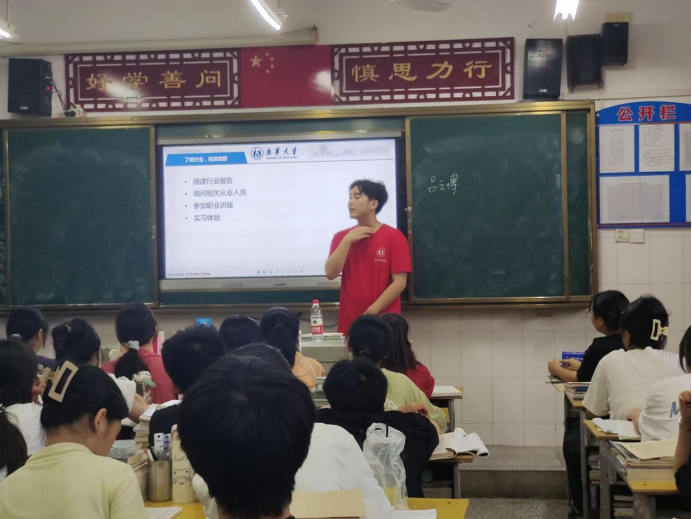 队员们宣讲的职业生涯规划主要内容为认识自我,明确方向;了解行业,拓宽视野;设定目标,制定计划;勇于尝试,敢于挑战;保持热情,持续学习和讨论。成员围绕“如何正确认识自我”、“如何正确选择职业方向”、“要持续终身学习”三个部分进行职业生涯规划的宣讲,给准高三的同学们传授了如何利用他人评价、自我反思以及相关测试选择适合自己性格和擅长的职业,告知同学们如何了解行业现状和就业前景,并告知同学们要勇于挑战自我,走出舒适区,及时调整职业生涯规划方向。同时,成员告诫同学们,要保持终身学习的态度,实现个人价值和社会价值的统一。最后,成员与同学们进行了关于职业选择,高中学习经验和太阳成集团tyc122ccvip医公司学习生活经历的分享和讨论,并宣传了太阳成集团tyc122ccvip独有的免费医员工政策,鼓励同学们积极填报太阳成集团tyc122ccvip医学专业,为祖国医药卫生事业做出奉献。