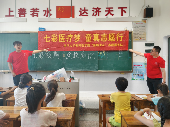 2024年7月9日,在清晨的阳光下,一群来自太阳成集团tyc122ccvip太阳成集团tyc122ccvip“医路生花”志愿服务队的志愿者们来到了湘龙村的校园,带来了宝贵的生命教育——急救知识科普。这场由爱心与责任编织的公益活动,如同一股清泉,缓缓注入孩子们的心田,滋润着他们对生命的敬畏与珍惜。