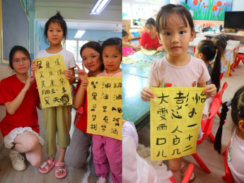京剧“卖水”表演体验课程,让孩子们在舞台上感受和学习京剧的表演艺术,通过动作、表情和唱腔,传达中国传统戏曲的美学和情感表达方式。毛笔书法课程则引导孩子们用毛笔书写汉字,体验中国书法的独特魅力,同时培养他们对汉字艺术的敏感性和认知能力。