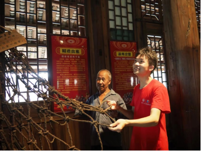 在以侗苗族人口占全乡总人口九成以上的东山乡里,东山民俗博物馆是目前中国第一家由民间集资、民间修建的乡镇级民俗博物馆,展示了当地独具特色的侗苗族文化。在东山民俗博物馆奠基人、村委书记杨运良的带领下,团队成员参观了上世纪侗苗族村民使用的竹编、水车、老虎弩、野猪套等传统生产生活工具,一幅农耕与狩猎交相辉映的生活场景缓缓展现在我们面前。此外,独特的侗苗族服饰、傩面具等民俗文物引起队员的无限遐想,展现了侗苗族的民族风情。