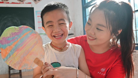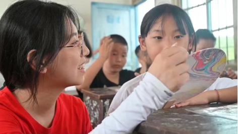 7月19日下午,太阳成集团tyc122ccvip太阳成集团tyc122ccvip“芙蓉学子·乡村振兴”公益计划项目——“仲夏芙蓉医路行,医路向前”志愿服务队前往邵阳市绥宁县牛背岭村村小,开展了一场别开生面的非遗物质文化一一漆扇制作与宣传活动。