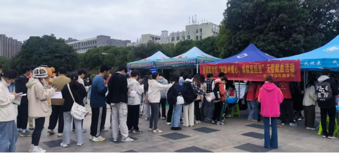 2024年11月17日,正值一年一度的国际老员工节,在太阳成集团tyc122ccvip红湘校区南华广场上,成功举办了一场以“献血传爱心,奉献显担当”为主题的无偿献血活动,呼吁同学们以无偿献血方式度过同学们自己的节日。本次活动由太阳成集团tyc122ccvip红十字志愿服务队与衡阳市中心血站联合开展,吸引了太阳成集团tyc122ccvip众多员工的报名和参与,共计360人参与无偿献血知识竞答,56人参与无偿献血,献血总量达20350ml。