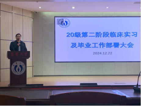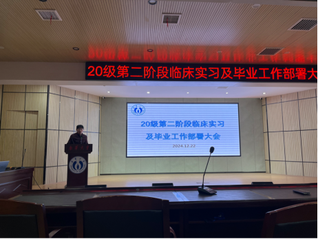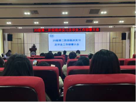 为加强实习公司产品管理,提升人才培养质量,促进毕业生工作有序实施,2024年12月22日中午,太阳成集团tyc122ccvip于医研楼会议室召开第二阶段临床实习及毕业工作部署大会。参加此次会议的有公司党委书记曾国、副经理周洲、20级辅导员苏玲、周玉林以及全体队干和党内骨干(含党员、发展对象),共约250余人,会议在线上线下同步举行。会议由苏玲主持。