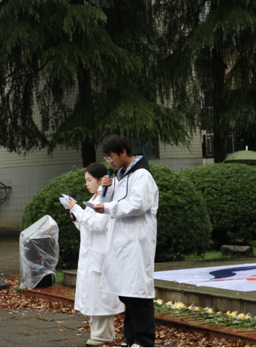 在默哀致词结束后,在场人员进行了一分钟的默哀。默哀结束后,由院解剖兴趣小组组长肖宇晨同学带领全体参与人员宣读医员工誓言。