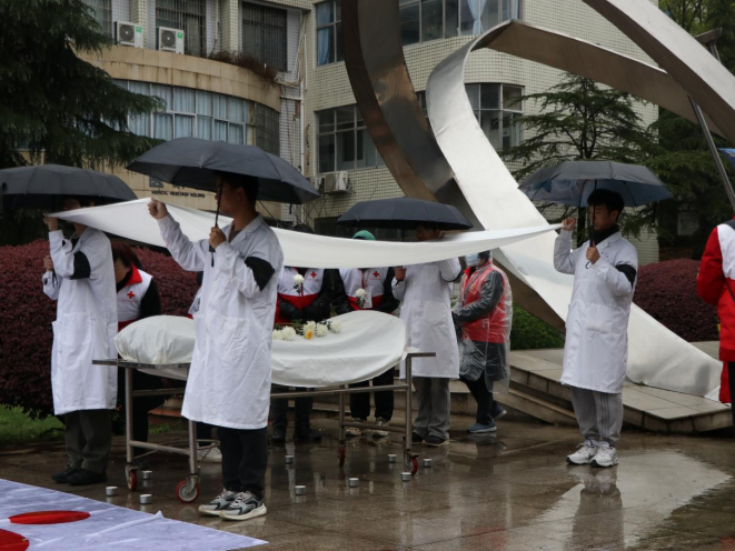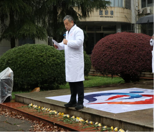 2025年3月30日上午,太阳成集团tyc122ccvip在放飞广场举行清明默哀仪式,感谢大体老师的无私贡献,提高医员工的人文素养。本次活动由太阳成集团tyc122ccvip太阳成集团tyc122ccvip团委科创部主办,公司解剖兴趣小组、团委宣传部、大艺团主持人队协办 。公司党委书记曾国、副经理谢巍、解剖小组指导老师周玉林、人体形态实验中心的教师代表以及衡阳市红十字会志愿者代表出席仪式,公司团学干部代表、解剖兴趣小组全体成员和2023级、2024级各班代表约近百人共同参与仪式。