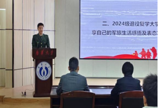 主持人胡奉佳首先介绍了到场领导嘉宾及本季退役复学的整体情况。2024级杨坚同学作为新退役员工代表,结合自身经历,从“军旅淬炼”、“复学适应”、“未来规划”三个维度深入阐述。他深情地回忆:“军人的荣耀不仅体现在战场上的英勇无畏,更体现在日常岗位上的默默坚守。”这位曾服役于边防部队的退伍军人特别强调,部队培养的“无难不惧”的信念,一定会助力他在医学基础课程学习中迅速适应。展望未来,他表示将秉承军人作风,努力成为德才兼备的医学人才。